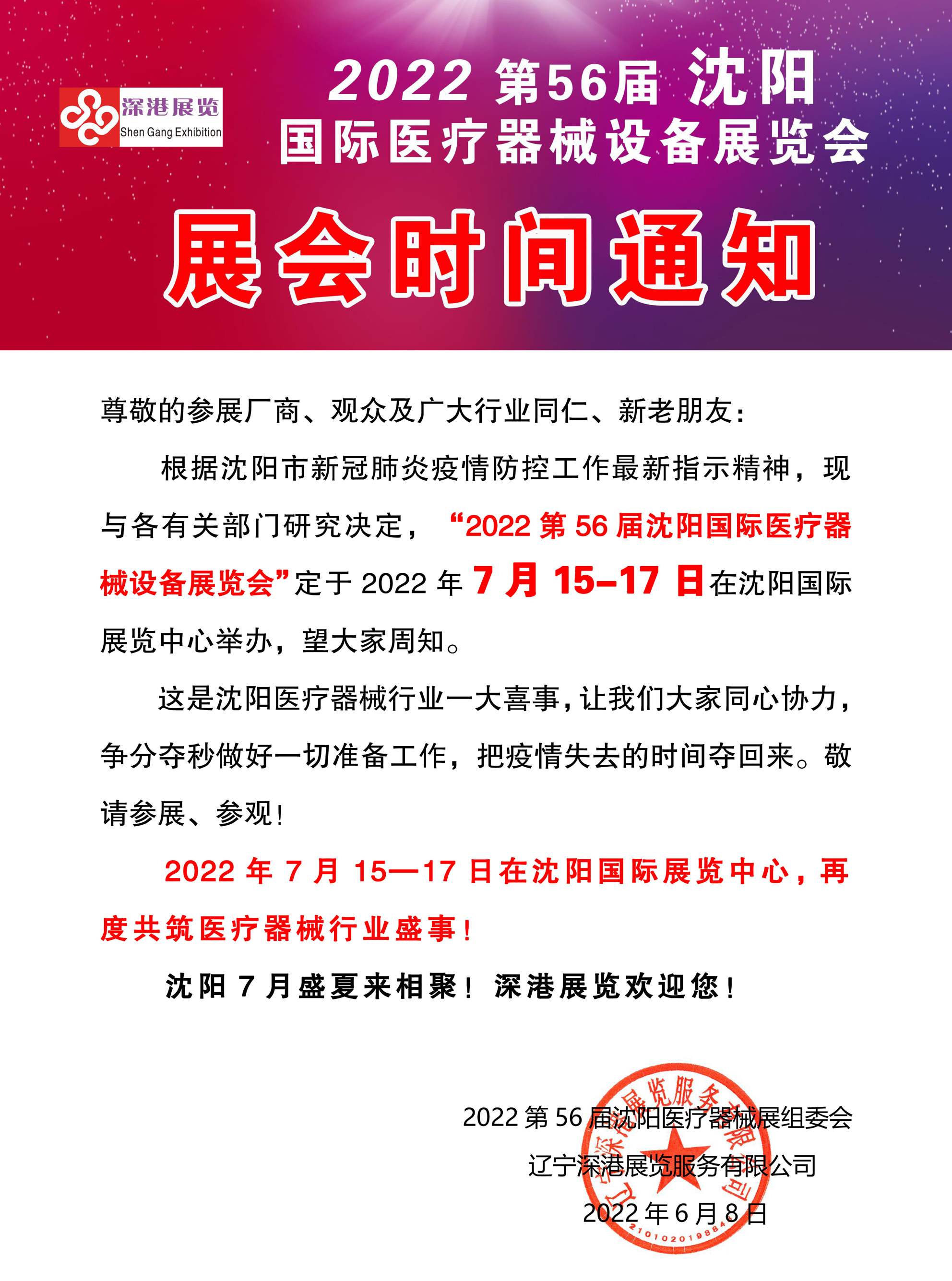 2022第56屆沈陽國際醫(yī)療器械設(shè)備展覽會(huì)7月15-17日盛大召開!?。?/strong>